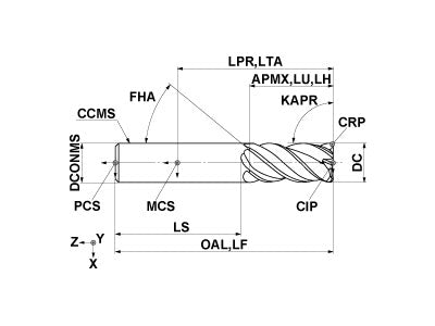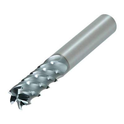 Chip breaker type end mill for efficient chip breaking capabilities that also provides good surface finishes.